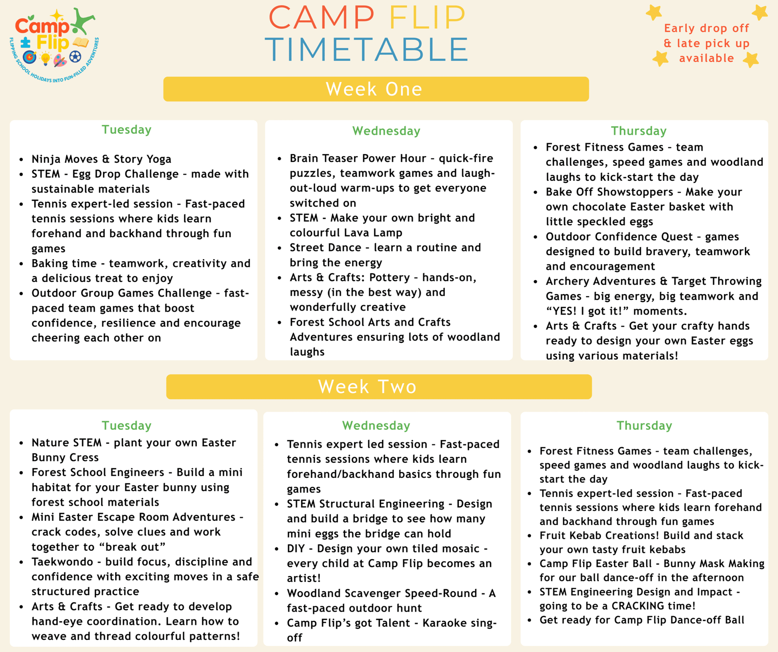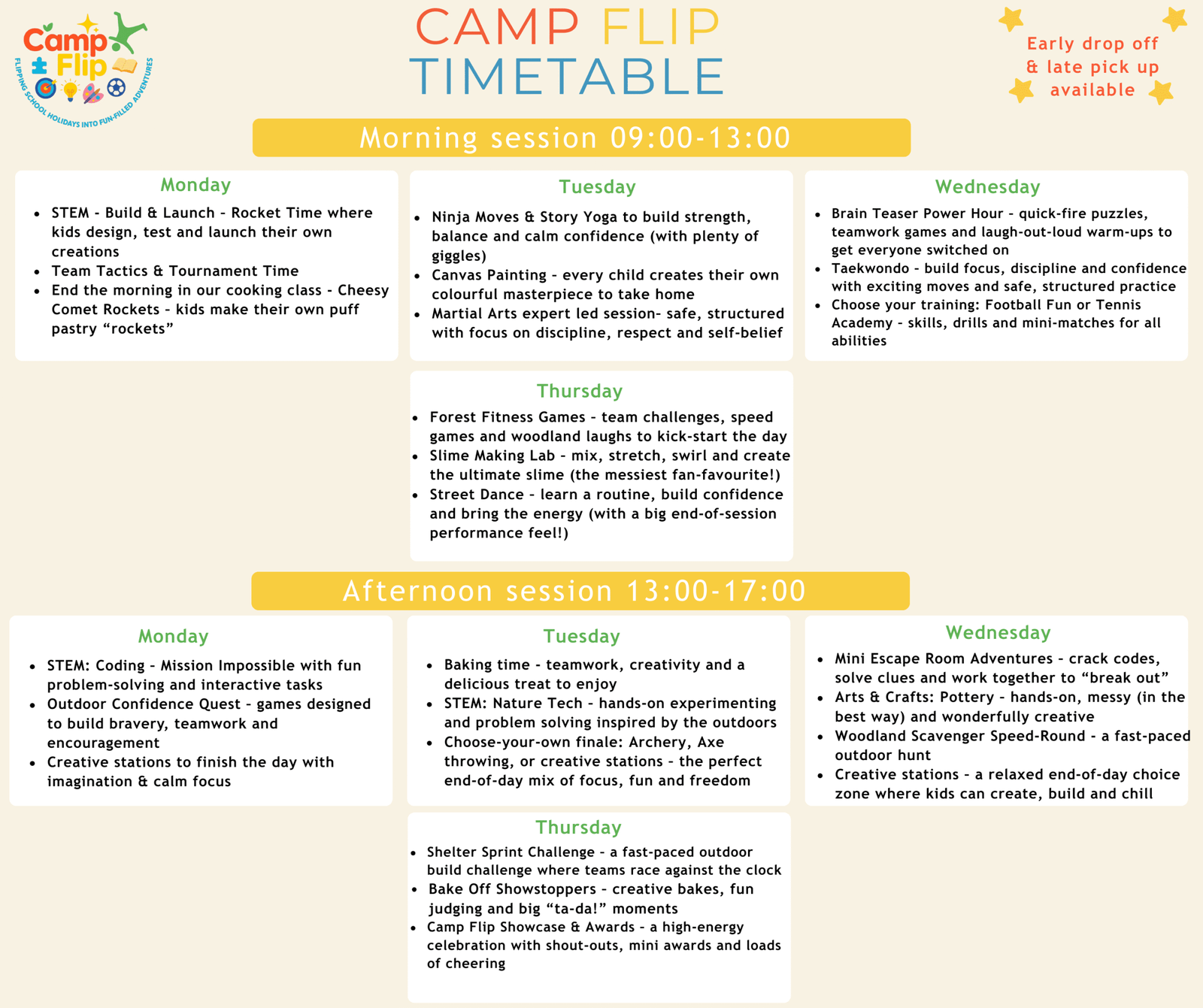 At Camp Flip, we believe children learn best through active, hands-on experiences. Our curriculum combines fun, creativity, and learning in a safe and supportive environment.